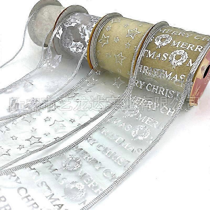 4pcs Christmas Ribbon for Gift Wrapping Ribbons Wired 2.5 Inch Set of Ribbon Wire Red Green Silver/White Sheer Organza Glitter Gift Wrap Xmas Tree Dec