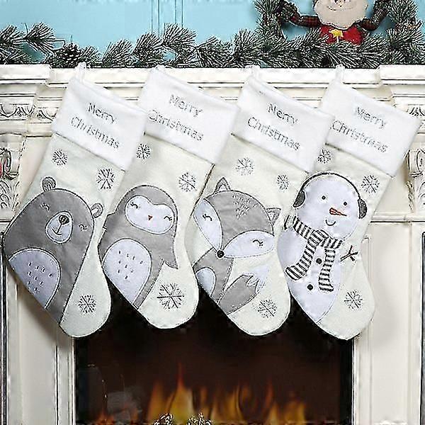 4pcs Christmas Stockings Cute Christmas Snowman Cartoon Animal Christmas Stockings Gift Bag Christmas Decorations Hanging