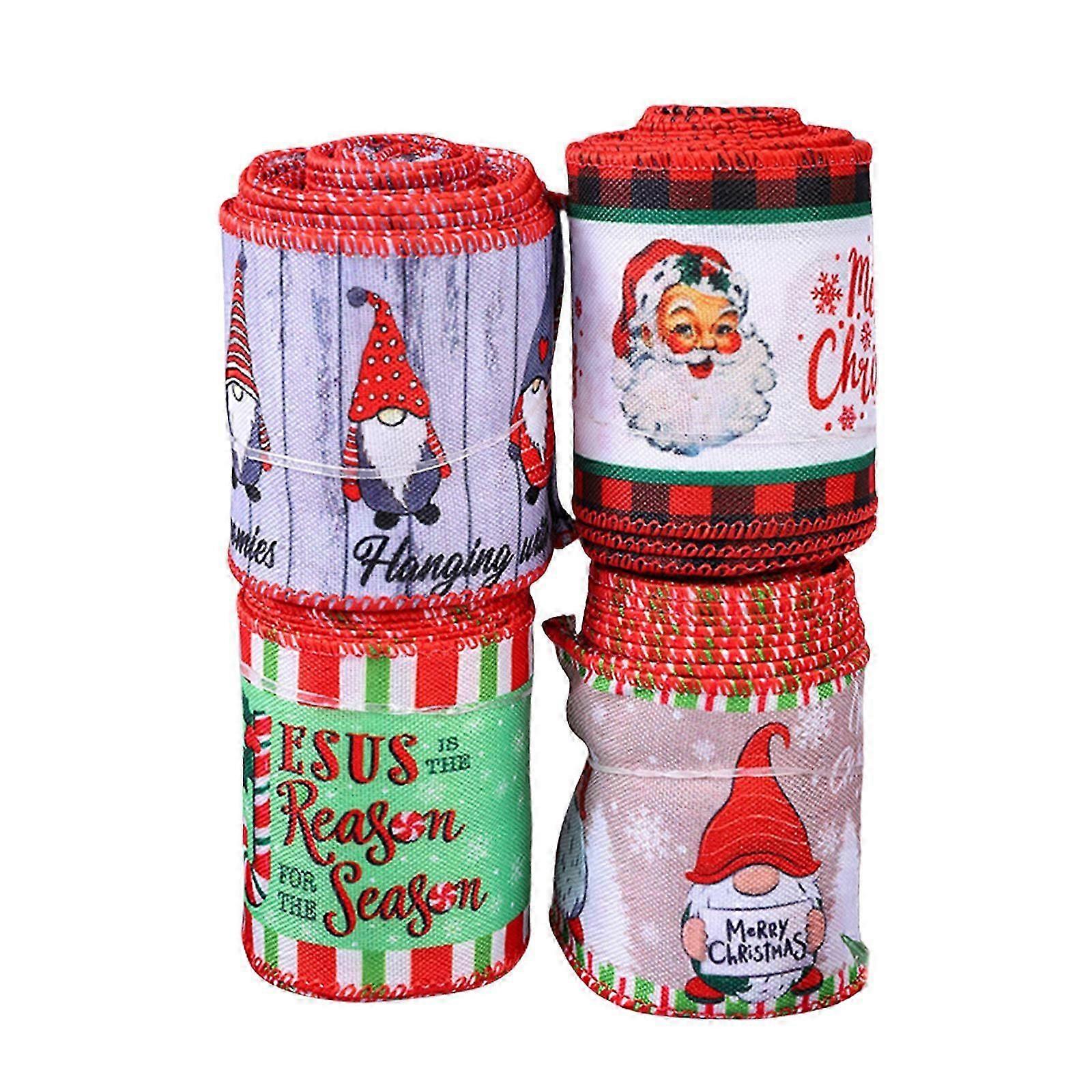 4pcs Functional Christmas Ribbons Embellishment Christmas Celebration Ribbons for Ornamenting Tree and Party Decoration