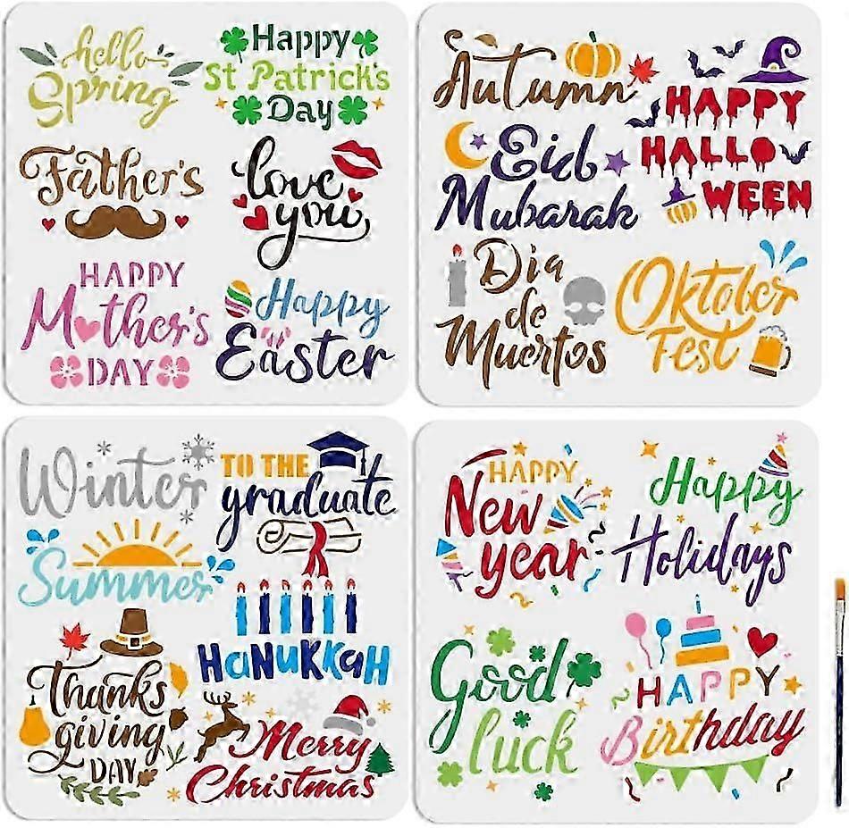 4pcs Holiday Seasonal Text Stencil 11.811.8inch Father's Day Mother's Day St. Patrick's Day Stencil Holiday Birthday Four Seasons Drawing Template wit