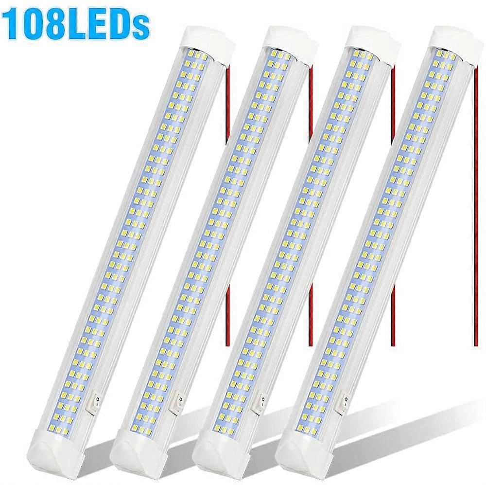 4Pcs LED Lamp 12v Caravan Camping 108 LED Car Indoor Lamp Bar Ceiling Lamps Bright White Fiber Optic With Switch