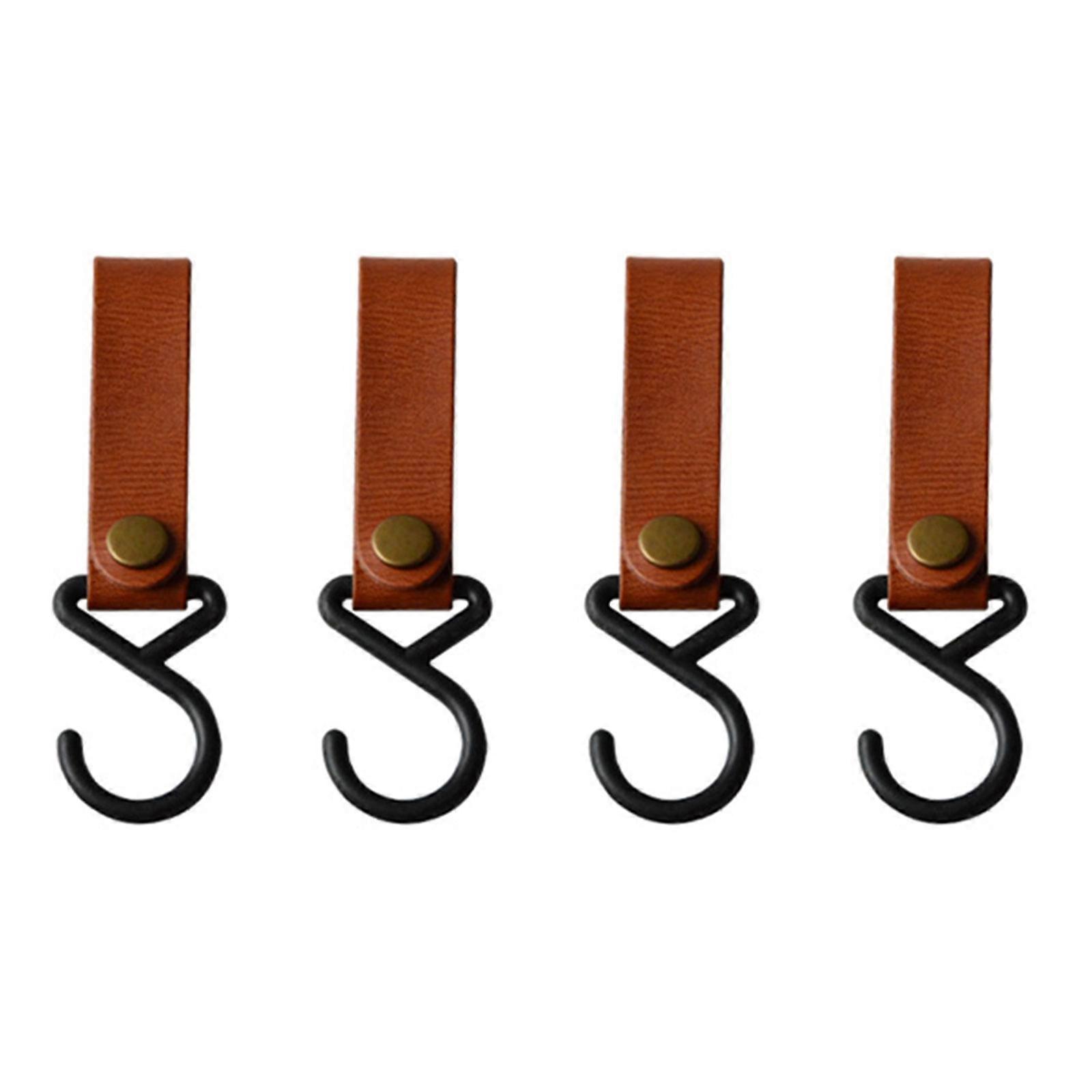 4Pcs Outdoor Camping Leather Hooks Fish Hangers Kitchenware Pots Pan Rack Wardrobe Hook Camp Supplies