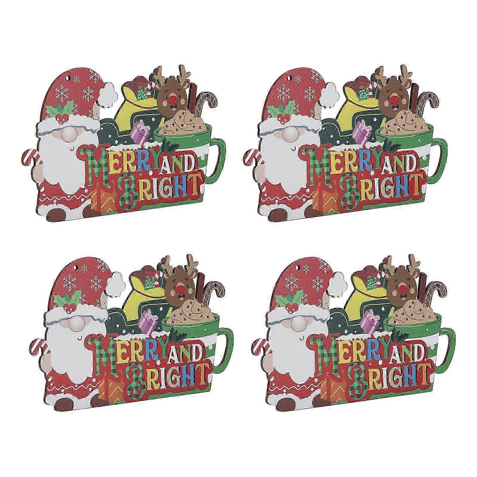 4pcs Reusable Wooden Christmas Ornaments Colorful Holiday Signs