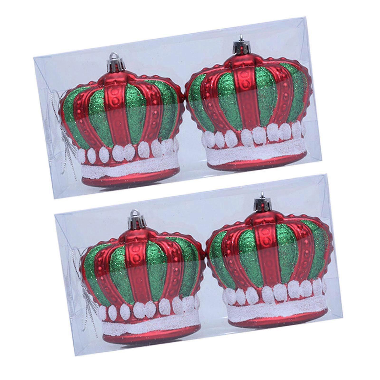 4Pcs Shatterproof Christmas Baubles Decorations Crown Shape Christmas Tree Hangings Ornament For Holiday Decoration Red and green