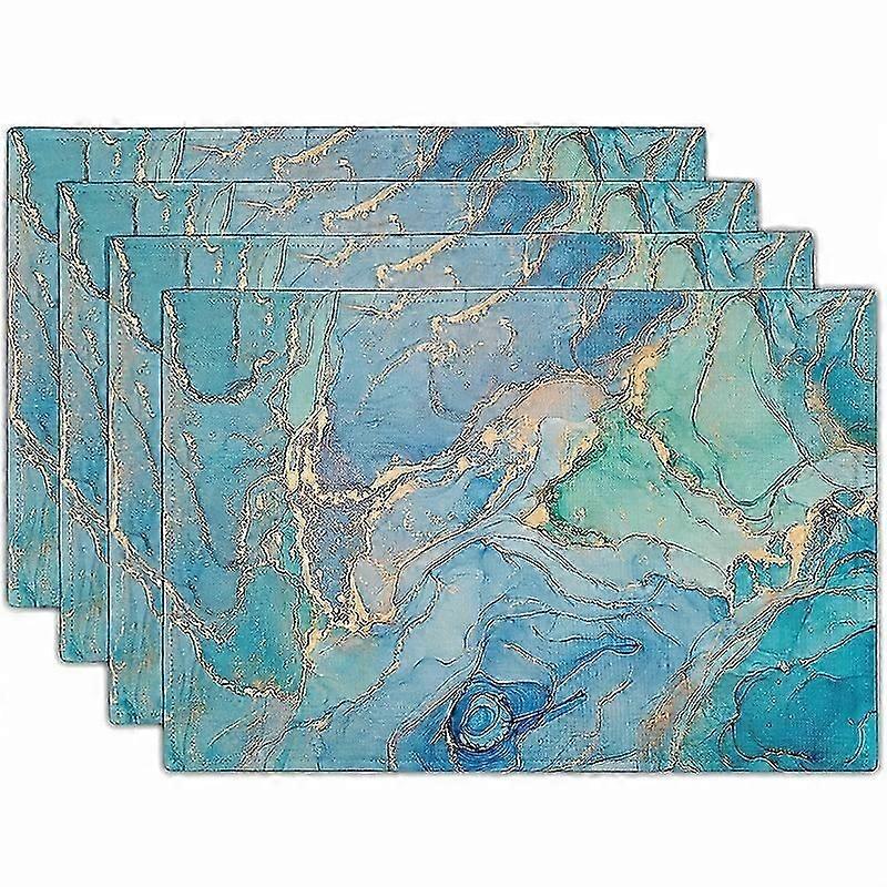 4pcs, Teal Placemats, Turquoise Blue Place Mats, Decorative Fabric Peacock Table Mat, Holiday Decor, Kitchen Decor, Dining Room Decor, Table Decor, Pa