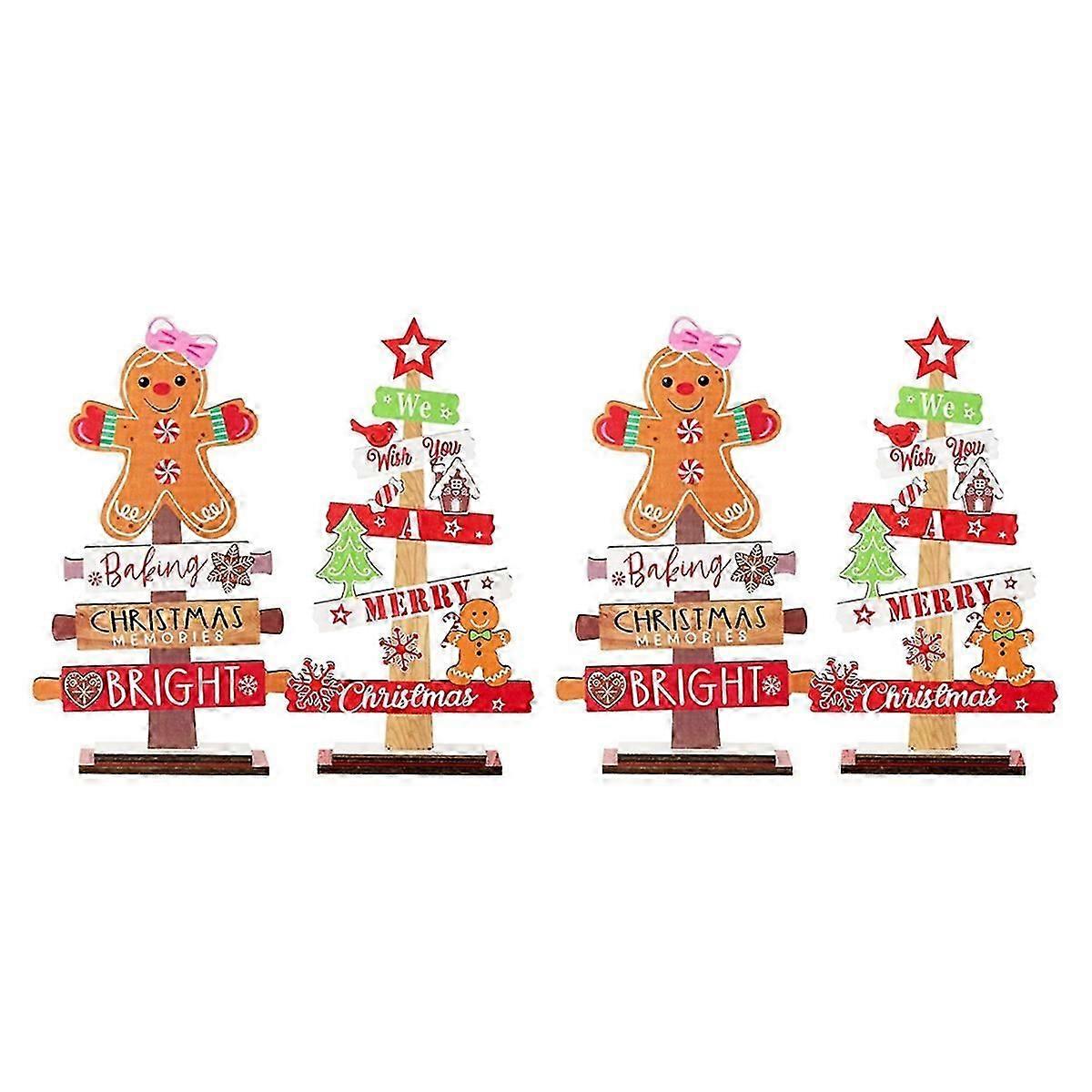 [Product Details] It incorporates classic Christmas elements such as gingerbread men, small Christmas trees, snowflakes and Merry Christmas signs, and every detail is exquisite, perfectly presenting the festive and warmth of the holiday. We also provide two bases made of two different sizes of wooden blocks, which have good stability and can be firmly erected on the Christmas table, entrance table or any space that needs a festive atmosphere.[Unique Wood Material] This wooden Christmas table decoration features warm gingerbread men and festive slogans, made of and environmentally friendly high-quality wood, perfect for adding a Christmas atmosphere to your home. The wood material we use is brightly colored. Whether it is placed on the Christmas table or as a Christmas entrance tabletop decoration, it adds a unique festive atmosphere.[Small and Sturdy] These two indoor Christmas decorations are small, simple and beautiful, suitable for desktops, shelves or other small spaces, adding to every corner of the home. Double base, so that this Christmas decoration not collapse. and easy to assemble, it is perfect for anyone to easily set up holiday decorations. Create a warm and stylish holiday atmosphere.Colour:As ShownMaterial:PlywoodPackage Contents:4 * Wooden ornamentsOnly the above package content, other products are not included.Note: Light reflection and different displays may cause the color of the item in the picture a little different from the real thing. The measurement allowed error is +/- 1-3cm.