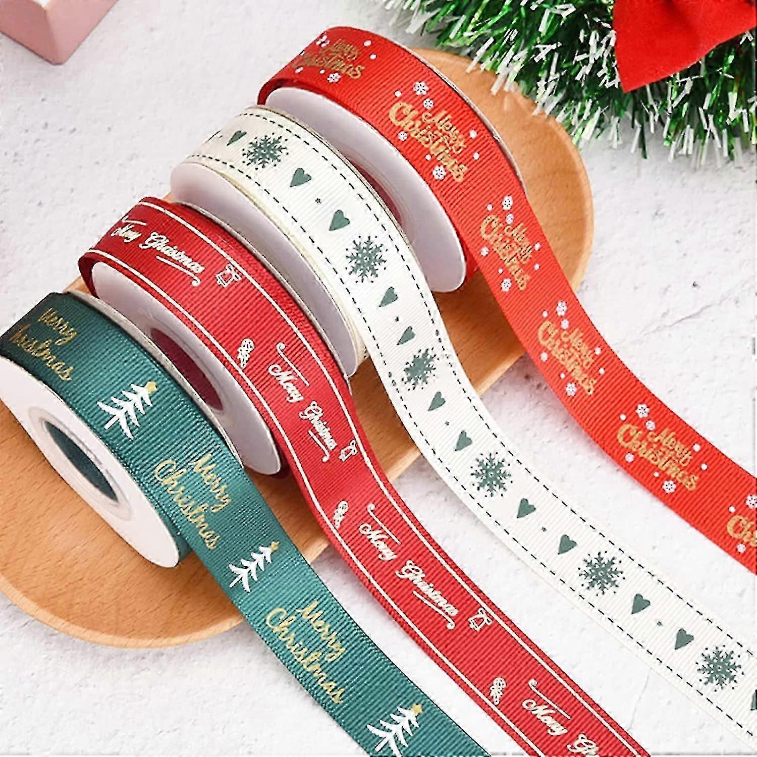 4rolls 9m Christmas Ribbons For Gift Wrapping,christmas Ribbon For Crafts,brown&white&green&red Ribbon,cake Ribbons,organza Ribbon,wrapping Ribbon,gif