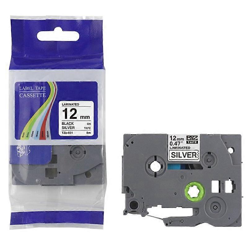 5 Pieces for Brother p-touch Label Tape 8M x 12mm Tzc-M931 (Black on Backing)