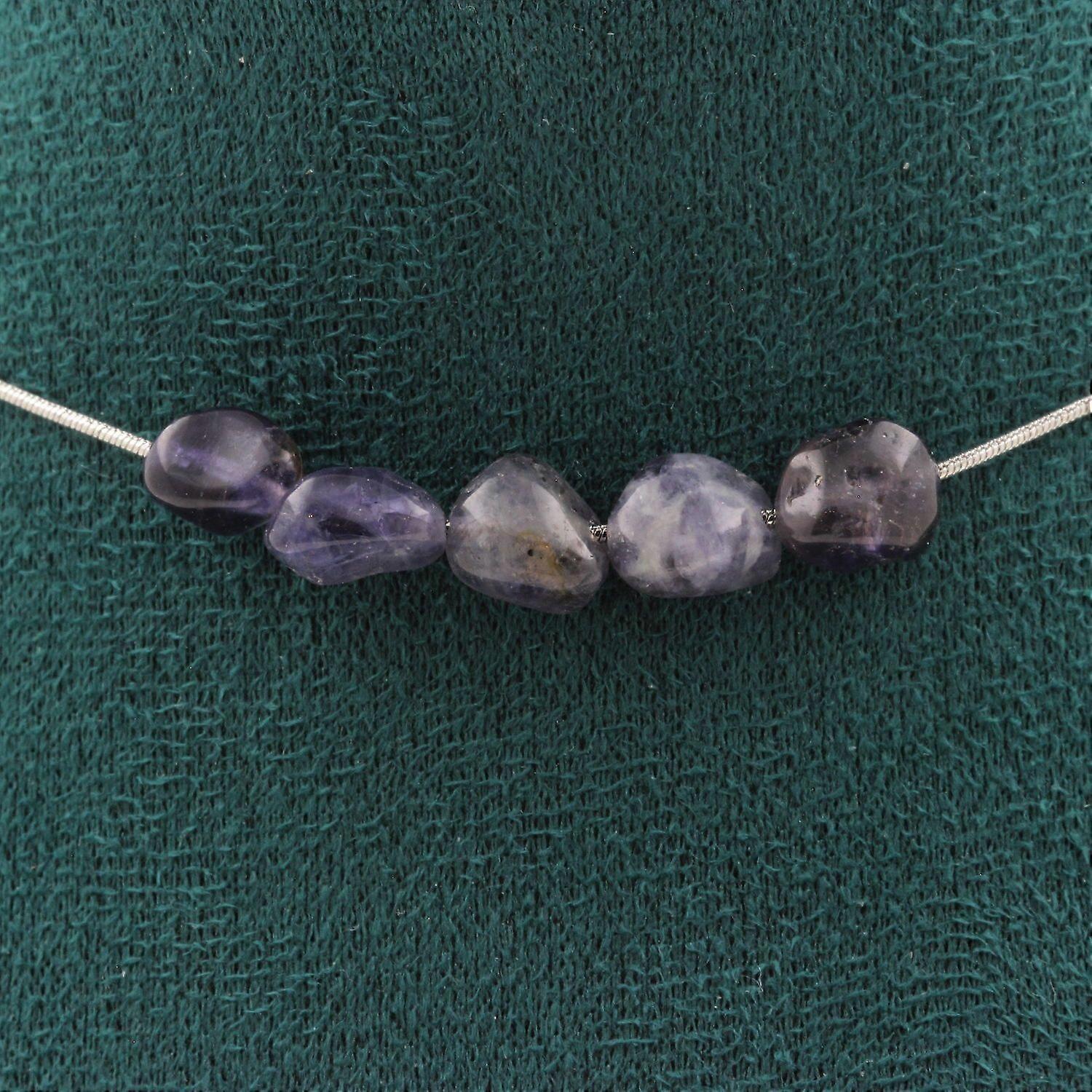 5-bead necklace Cordierite Iolite from Madagascar Stainless steel chain