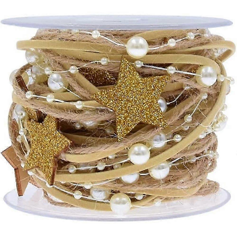 5 Meters Gift Ribbon Decorative Ribbon Jute Ribbon Pearl Ribbon with Pearls and Glitter Golden Stars Christmas Ribbons Pearls Necklace Wedding Decorat