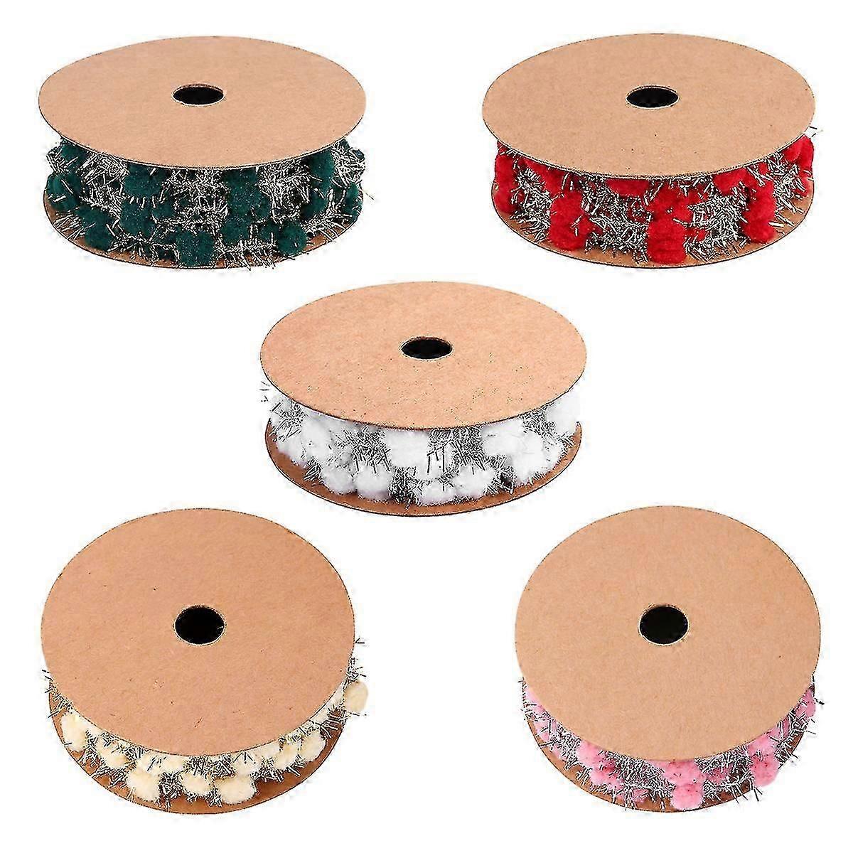 5 Pcs 3m Pom-poms Ball Ribbon Christmas Tree Decorative Gold Ribbon
