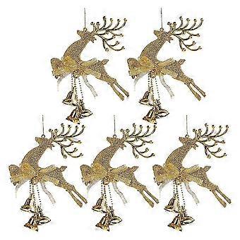 5 Pcs Hangers Decorate Reindeer Ornaments Xmas Tree Decoration Jingle Bells Christmas Holiday Party Supplies