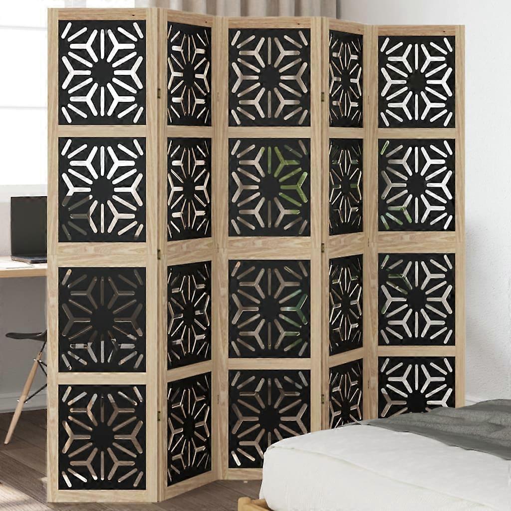 5-tlg. Raumteiler Braun und Schwarz Massivholz Paulownia
