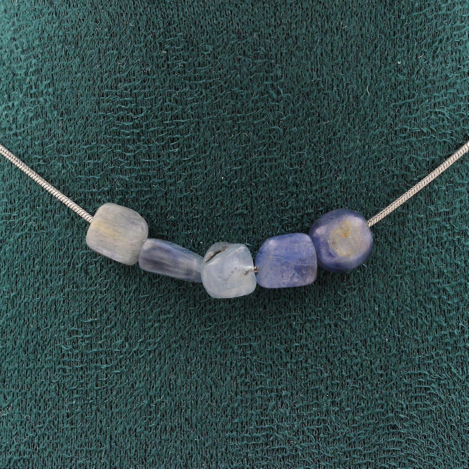 5-pearl necklace Blue Kyanite from Brazil Stainless steel chain