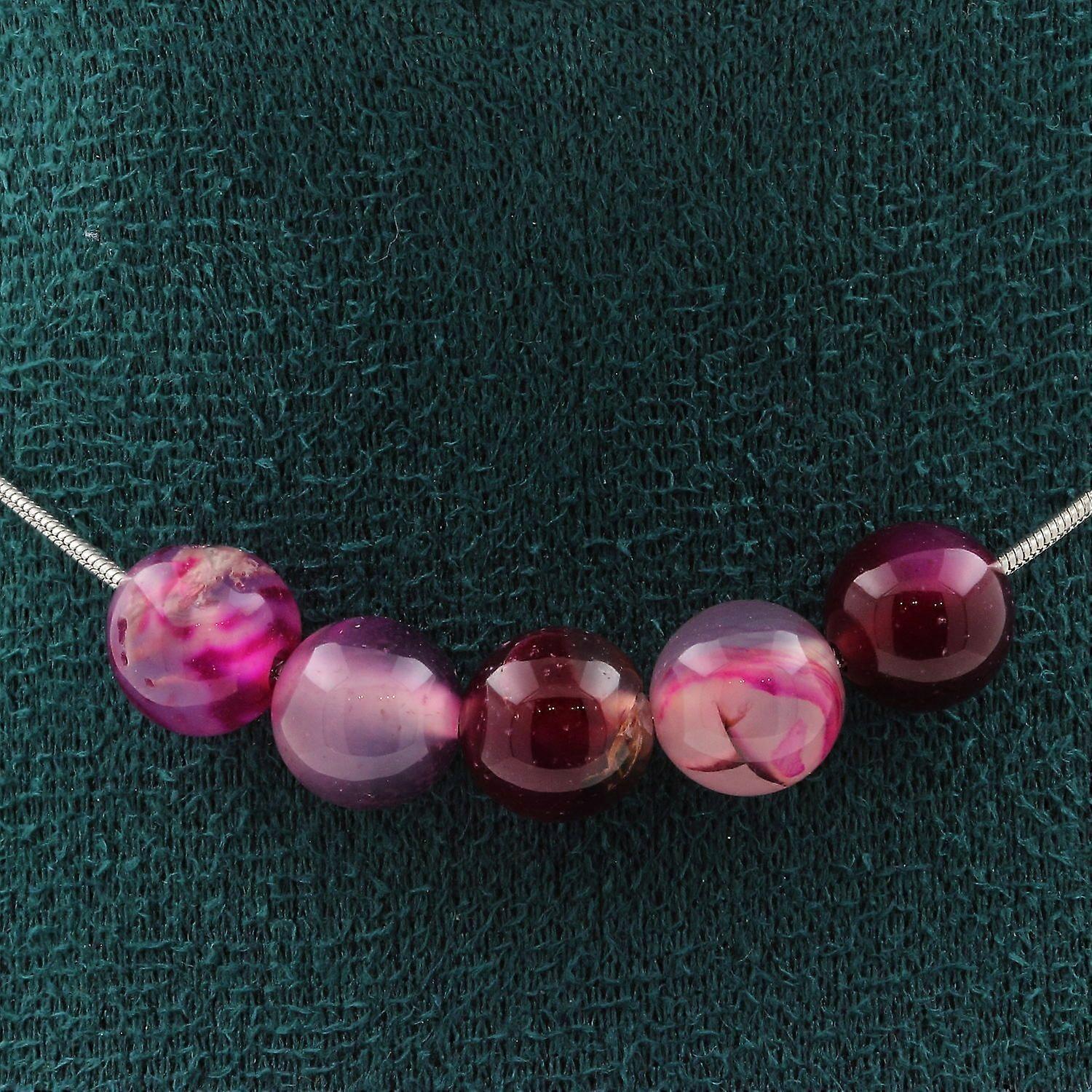 5-pearl necklace Pink ribboned agate 8 mm Stainless steel chain