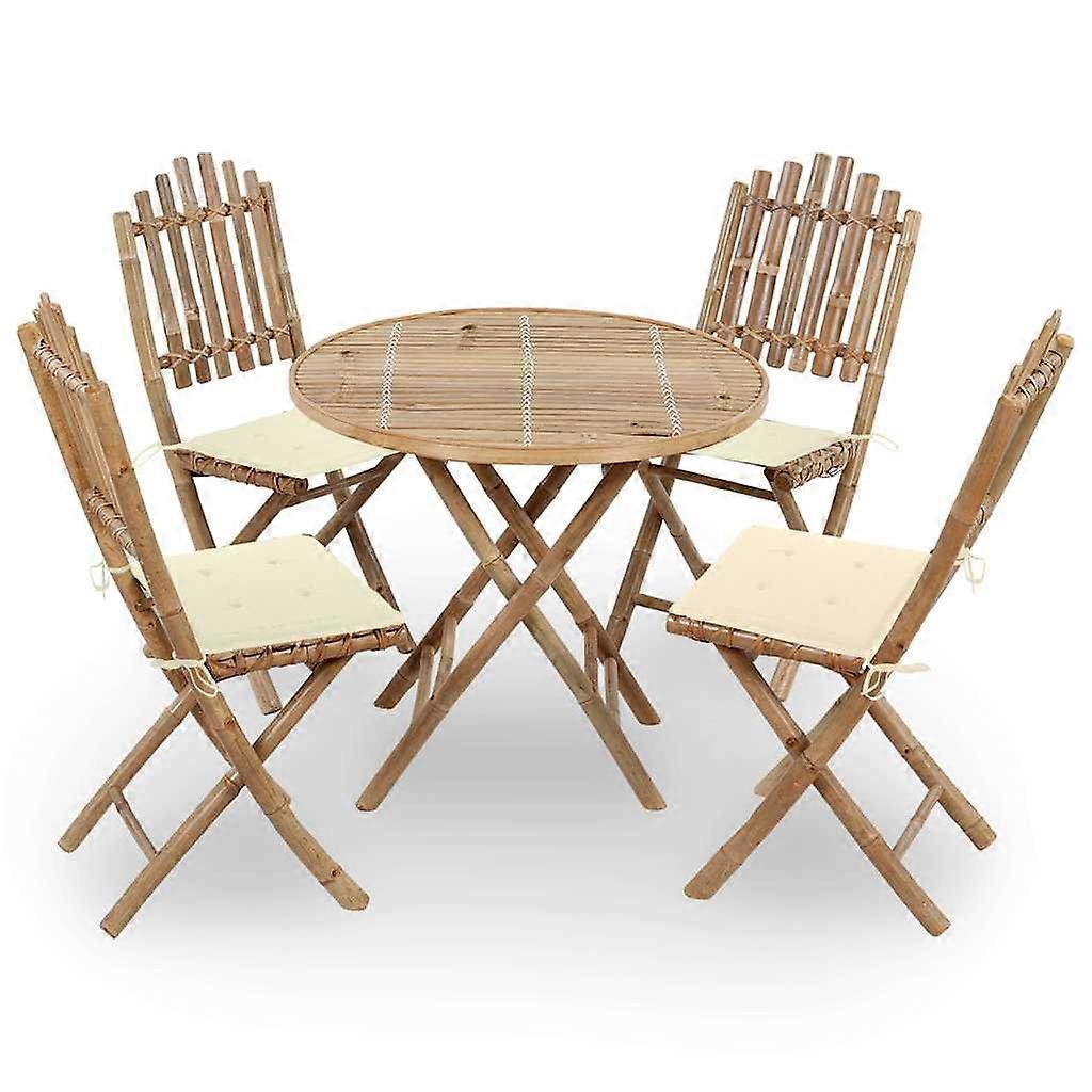 5-tlg. Garten-Essgruppe mit Kissen Klappbar Bambus