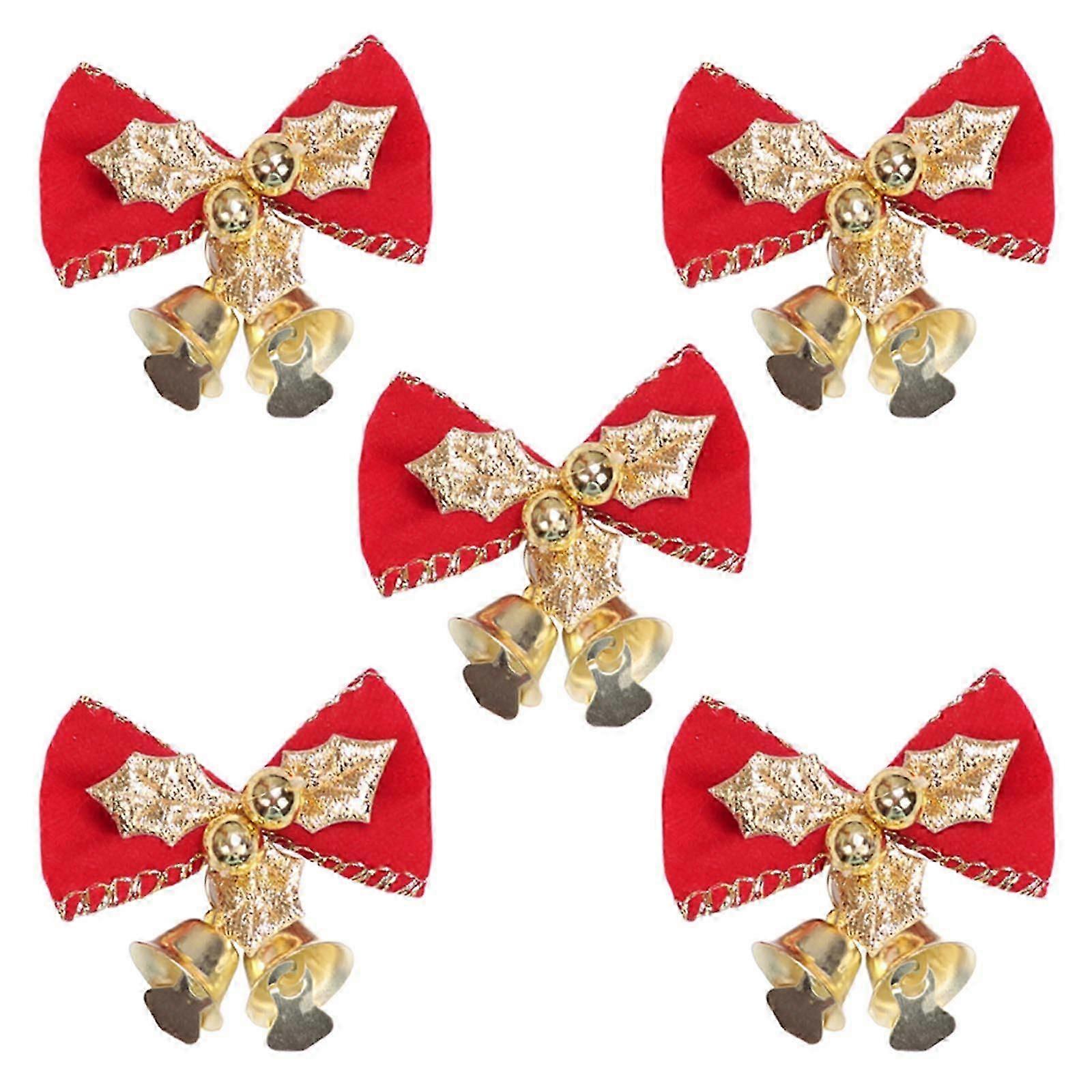 5 Pieces Christmas Tree Bow with Bells Christmas Bows for Christmas Tree Xmas Bow Hanging Ornaments Christmas Tree Decor