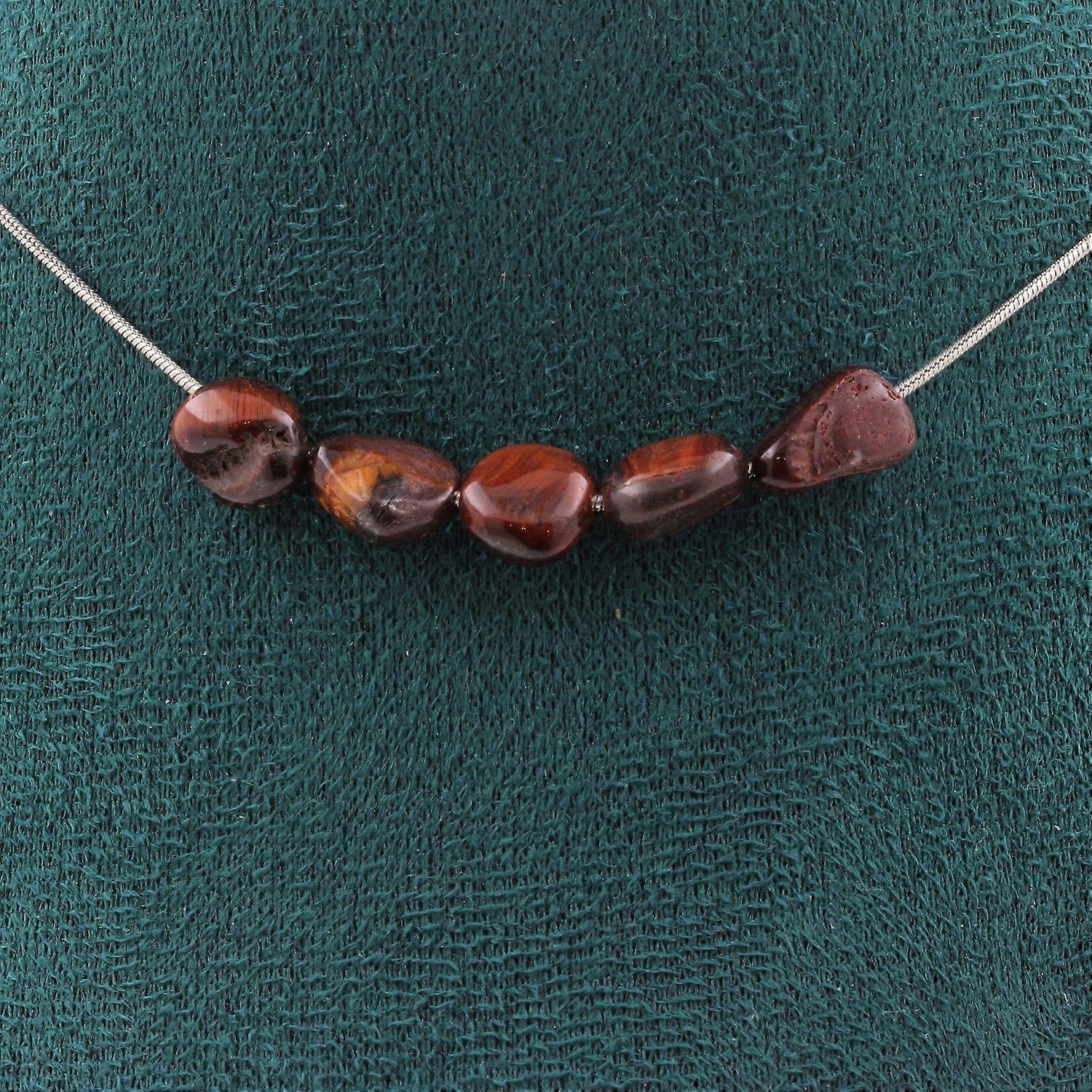 5 red Tiger Eye pearl necklace from Brazil Stainless steel chain