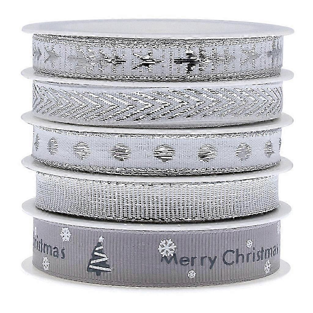 5 Rolls 2/10/15mm Christmas Ribbon Grosgrain Ribbon Craft Ribbon for Christmas Holiday Gift Wrapping Hair Bow