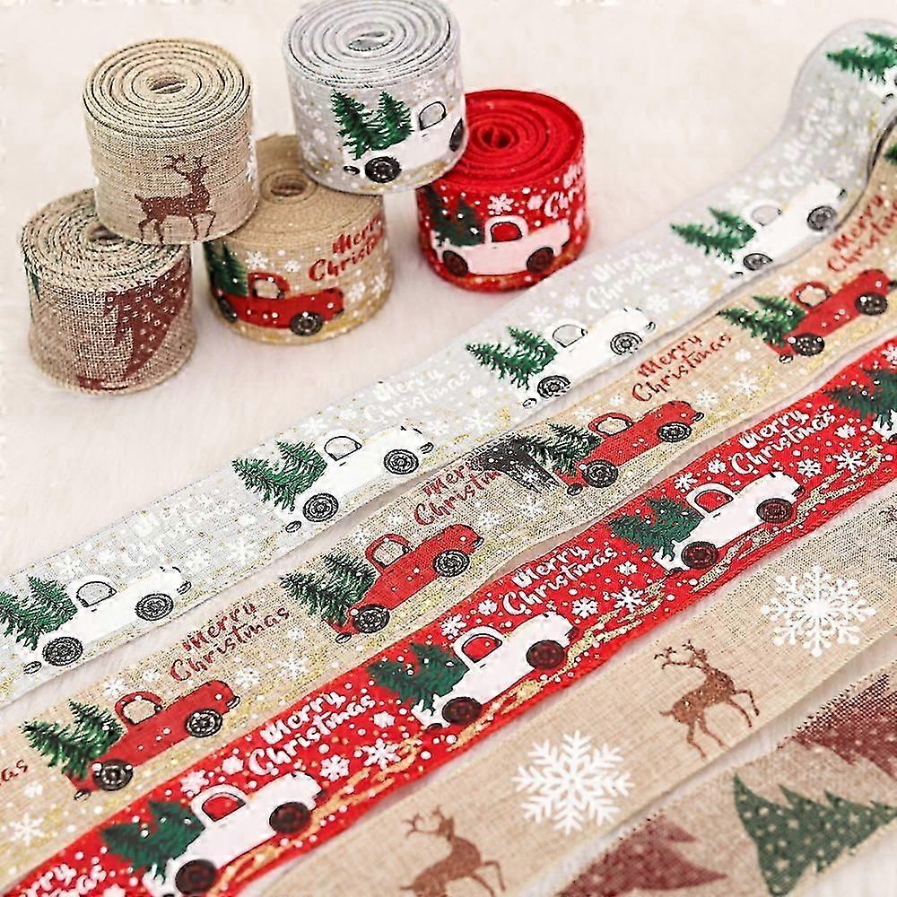 5 Rolls 5 x 500cm Burlap Wired Ribbon Christmas Wrapping Ribbon Classic Wired Ribbon Cloth Ribbons for Party Decoration for Christmas Party Gift Wrapp