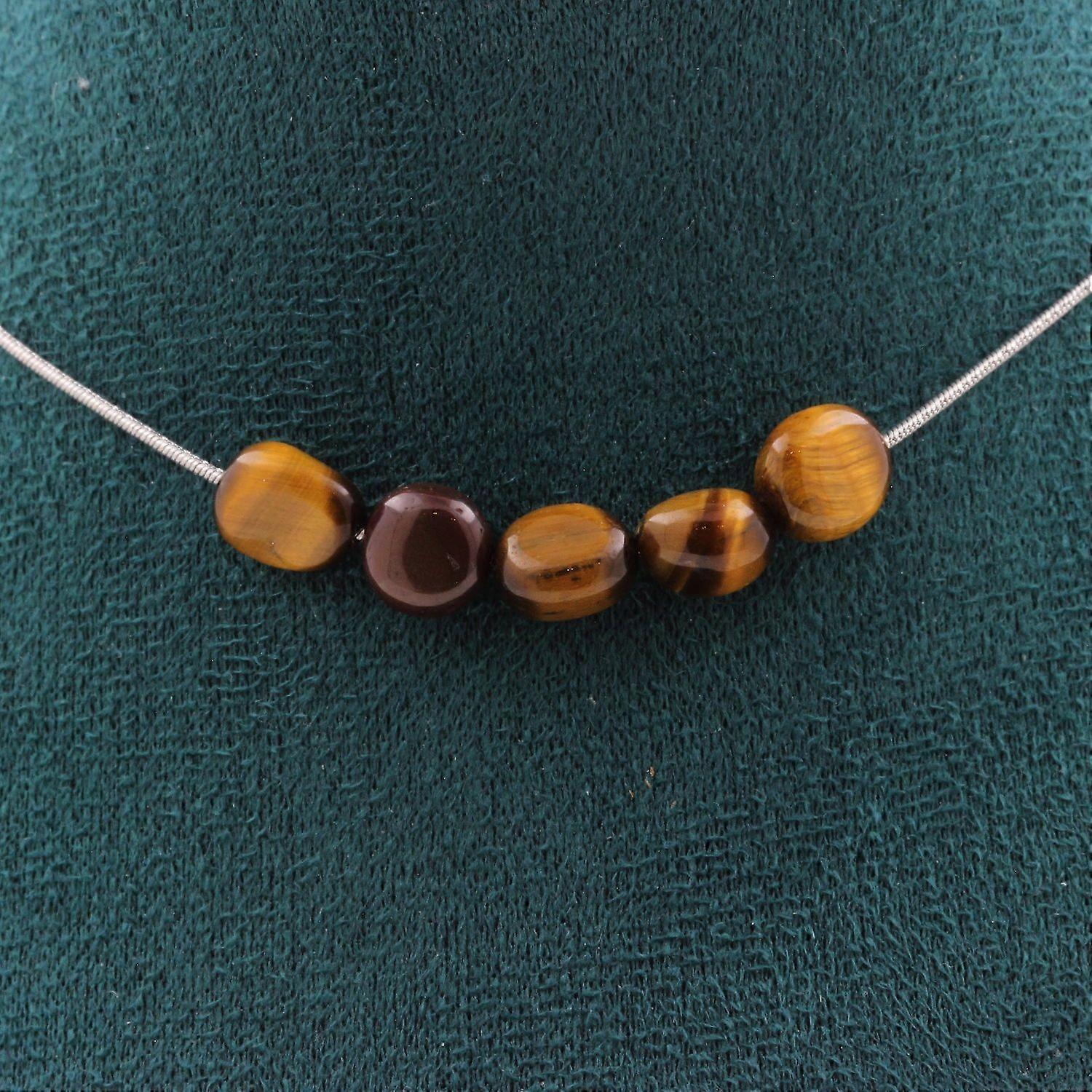 5 South African Tiger Eye pearl necklace Stainless steel chain