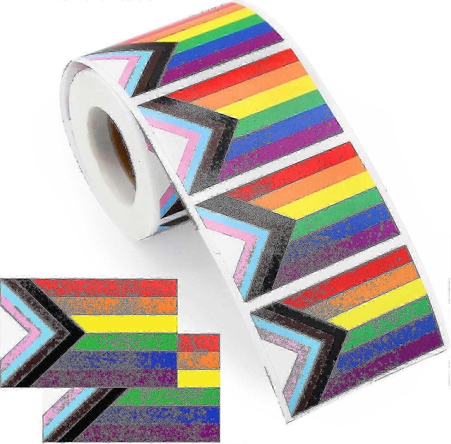 500 Pieces 5x3 Cm Progress Pride Flag Stickers, Rectangle Rainbow Pride Stickers Self Adhesive Sticker Roll For Gay Pride Month Decorations
