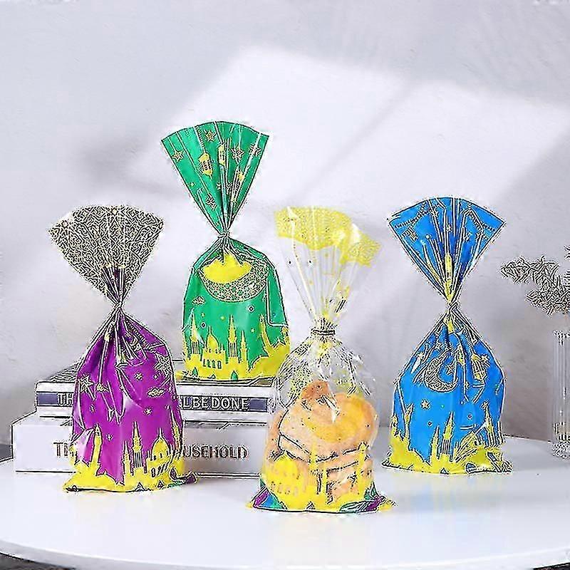 50pcs Eid Mubarak Gift Bags Plastic Candy Cookie Bag Ramadan Decoration Party