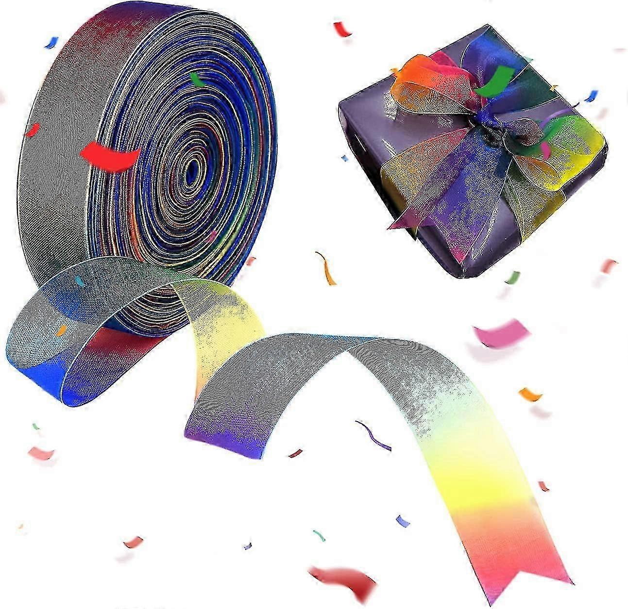 (50yard, 25mm)wide Rainbow Gift Ribbon, Organza Ribbons Sheer Satin Ribbon Glitter Deco Ribbon, Gradient Colors Cloth Ribbon Wedding Birthday Christma