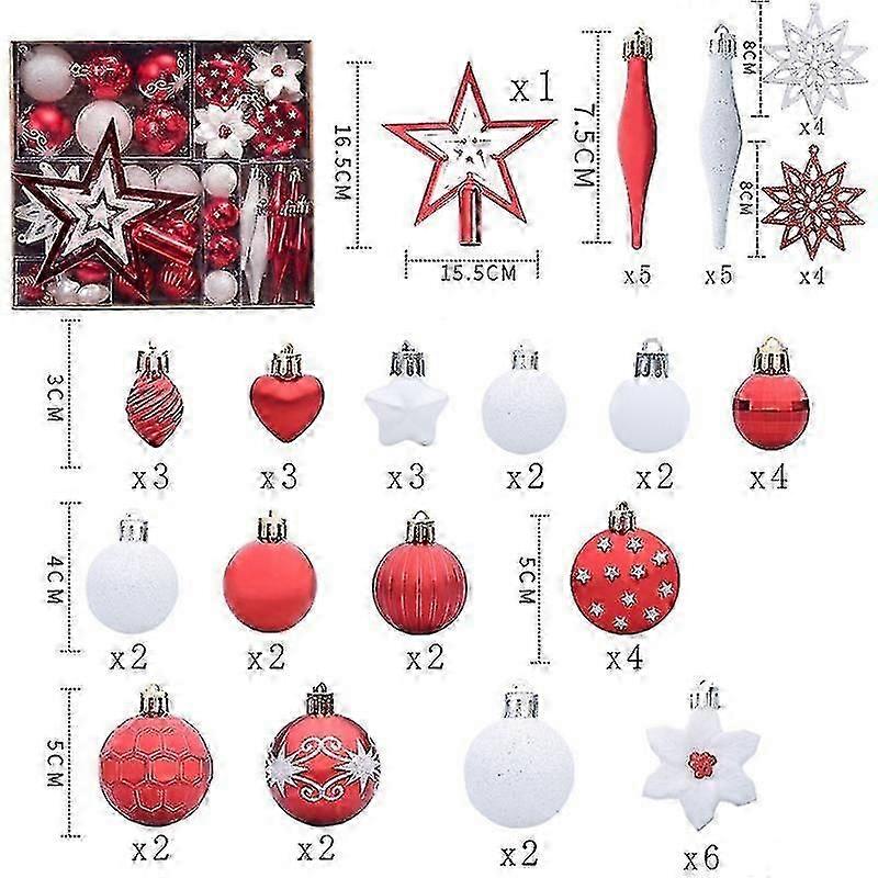 58 Pcs Shatterproof Christmas Baubles Painted Christmas Tree Ornaments For Holiday Wedding Christmas Decor (white-red)