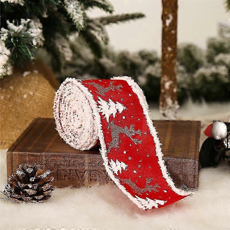 5M Christmas Elk Red Car Ribbon Xmas Tree Crafts Ribbon for DIY Christmas Gift Wrapping Home Wreath Bow New Year 2022 Decoration