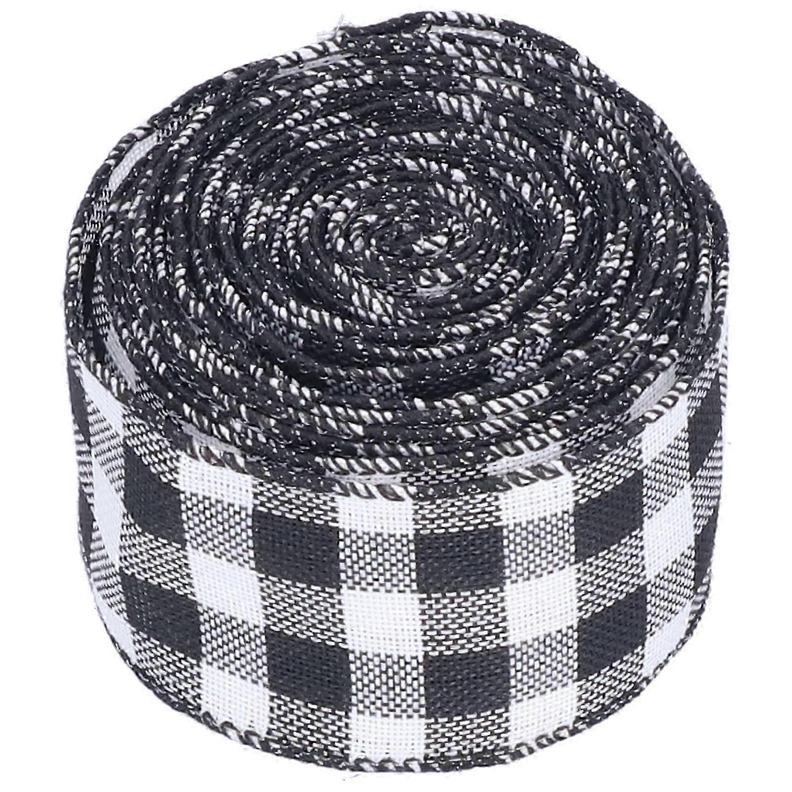 5m Christmas Wired Edge Ribbon Decorative Plaid Ribbon For Home Diy Gift Wrapping Crafts(black Red )