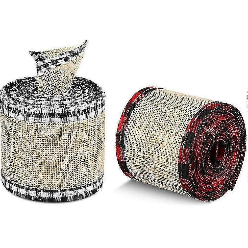 Color: Black and Red, Black and WhiteMaterial: cloth, iron wireDimensions: Length 500 cm (196.85 inches), Width 6.5 cm (2.56 inches)1,1. High-quality materials: The lattice belt is made of burlap and iron wire, which is not easy to tear, fold or scatter. The wired edge design makes it easy to roll and easy to use, and it can be bent into any shape. 2,2. Style: The cable tape has a rustic style, which makes the wrapped items or decorations look new. You can use it as wrapping paper for gift boxes, wrap it on the Christmas tree, or use it to wrap bouquets or make crafts of various shapes. 3,3. Wide range of applications: These unique lattice ribbons can be used to decorate your holiday crafts, such as Halloween craft decorations, flower bow crafts, gift packaging, Halloween wreaths, farmhouse decorations, wreaths, stairs, DIY hair accessories, etc. 4,4. Package content: 2 rolls of tape (1 roll of black and red and 1 roll of black and white). Large size: each roll is 6.5 cm/2.56 inches wide, and each roll is 500 cm/5M long.Due to the lighting effects and shooting angles, there is color difference in the product, please understand.Due to manual measurement, there is a tolerance in the product size.2x Christmas ribbons