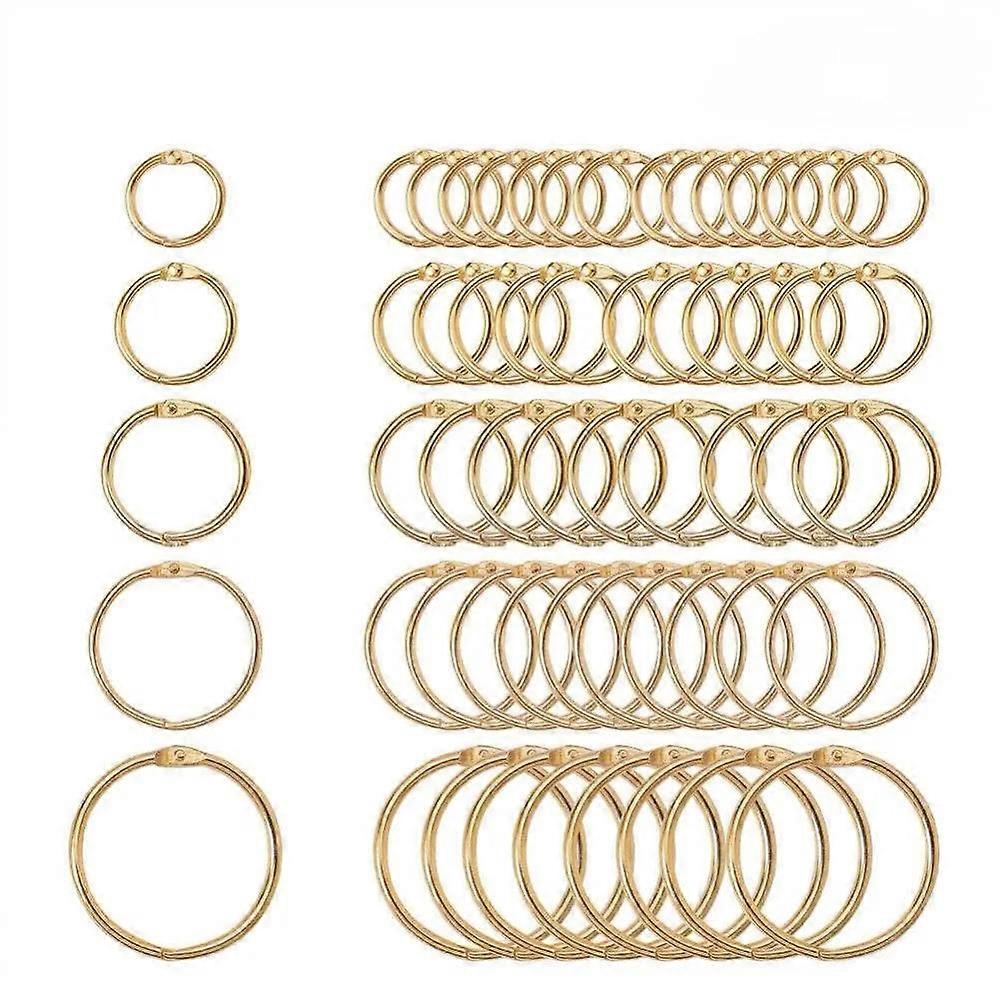 5pc 15-38mm Gold Metal Loose Leaf Binder Rings, Keychain Scrapbook Craft Hoops,