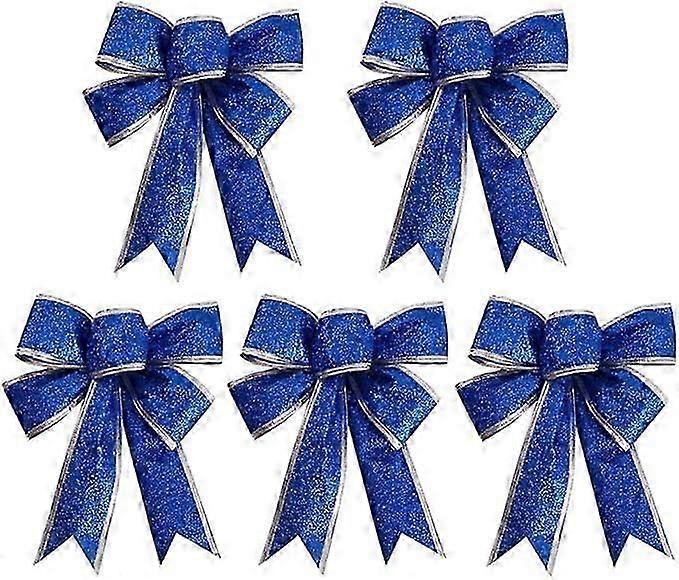 5Pcs Christmas Glittering Ribbon Bow Gift Knot Ribbon Ornaments Christmas Tree Presents Decoration(Blue)