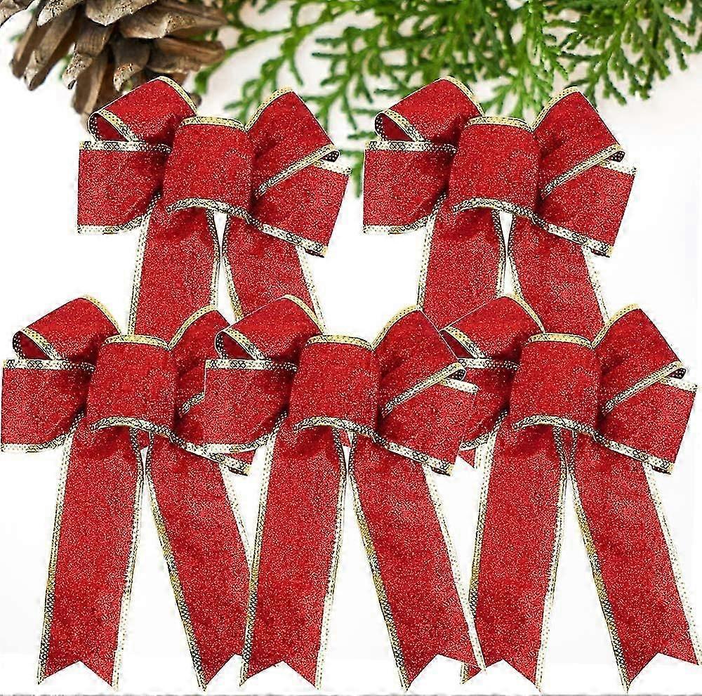5PCS Christmas Ribbon Bow 23cm Large Size Butterfly Bows Ribbon Ornaments Christmas Decoration for Gift Wreath Craftsred
