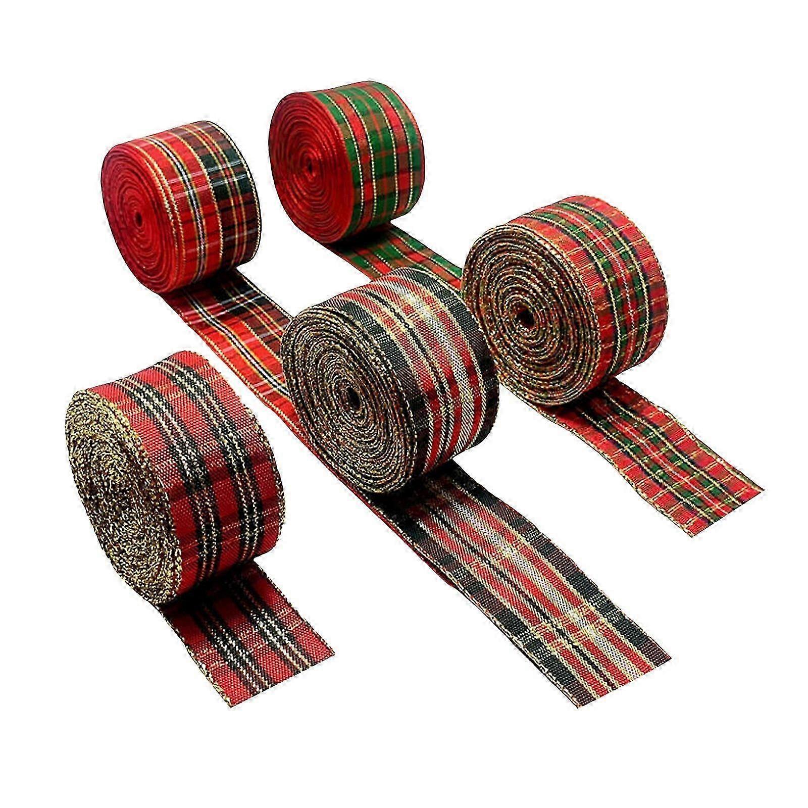 5Pcs Christmas Ribbon Fabric Ribbon Satin Wired Edge for Home Bows Tree
