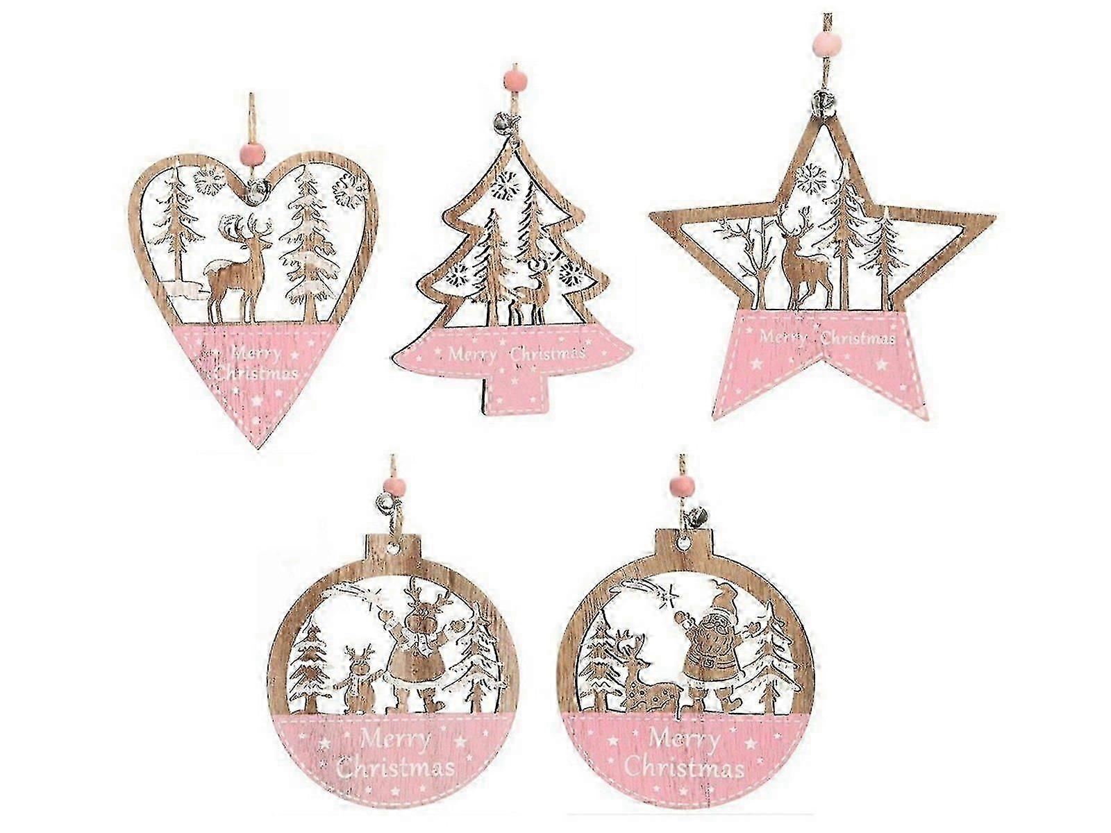 5Pcs Christmas Wooden Hanging Ornament Xmas Tree Pendant Decorations Home Decor