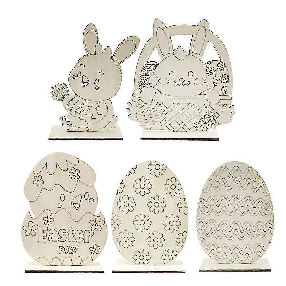 5Pcs Easter DIY Wooden Egg Rabbit Decorations For Holiday Home Decoration