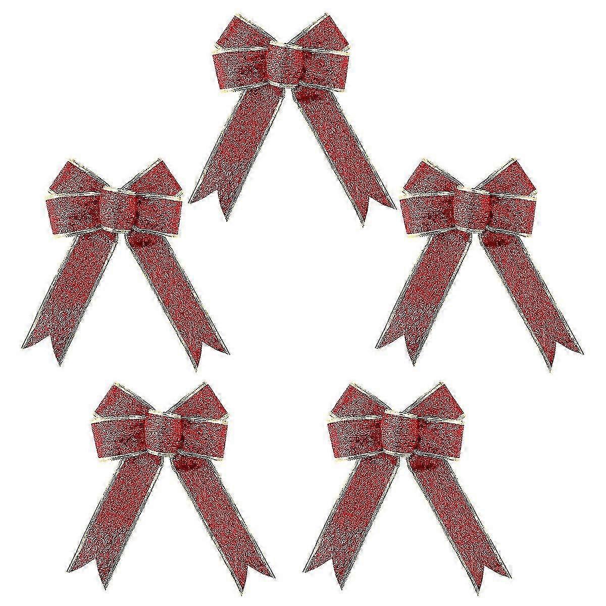 5pcs Glittering Fabric Christmas Ribbon Bow Gift Knot Ribbon Ornaments For Christmas Tree Presents Decoration (red)