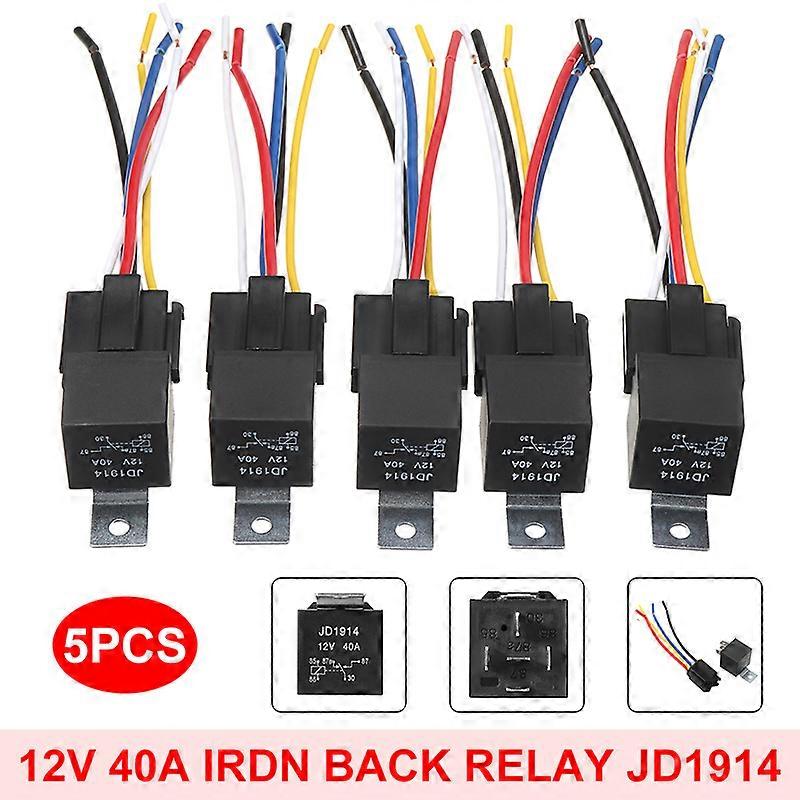 5Pcs JD1914 12V 40A Car SPDT Car Relay DC 5 Pin 5 Wires Sound Security Systems with Pre-wired Socket Wire Harnesses