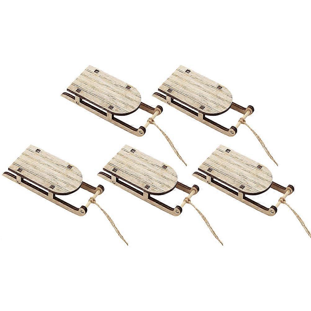 5PCS Miniature Wooden Mini Sleighs Tabletop Desktop Sleighs for Christmas