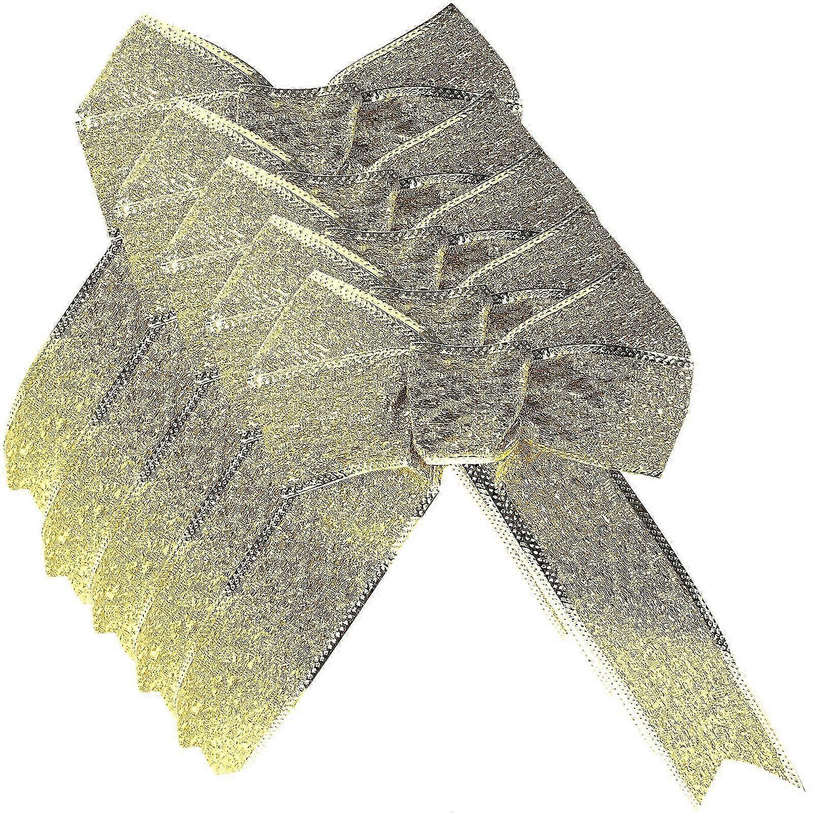 5pcs/Pack Glittering Fabric Christmas Ribbon Bow Gift Knot Ribbon Ornaments for Christmas Tree Presents Decoration(Golden)