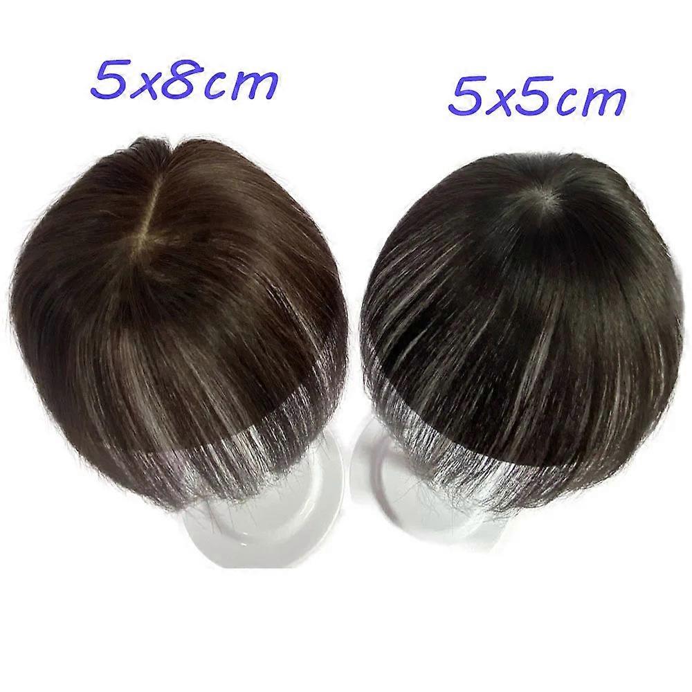 5x8cm Silk Base Human Hair Topper, Natural Scalp, 2 Clips, Covers Bald Spots