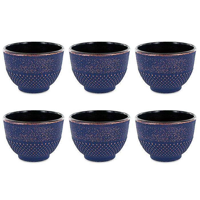 6 Chinese cast iron tea cups 15 cl - blue & bronze