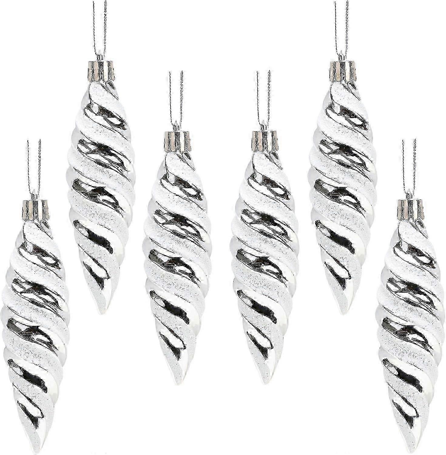 6 Large Glitter Spiral Baubles - Shimmering Silver Christmas Tree Decorations (11cm Diameter)