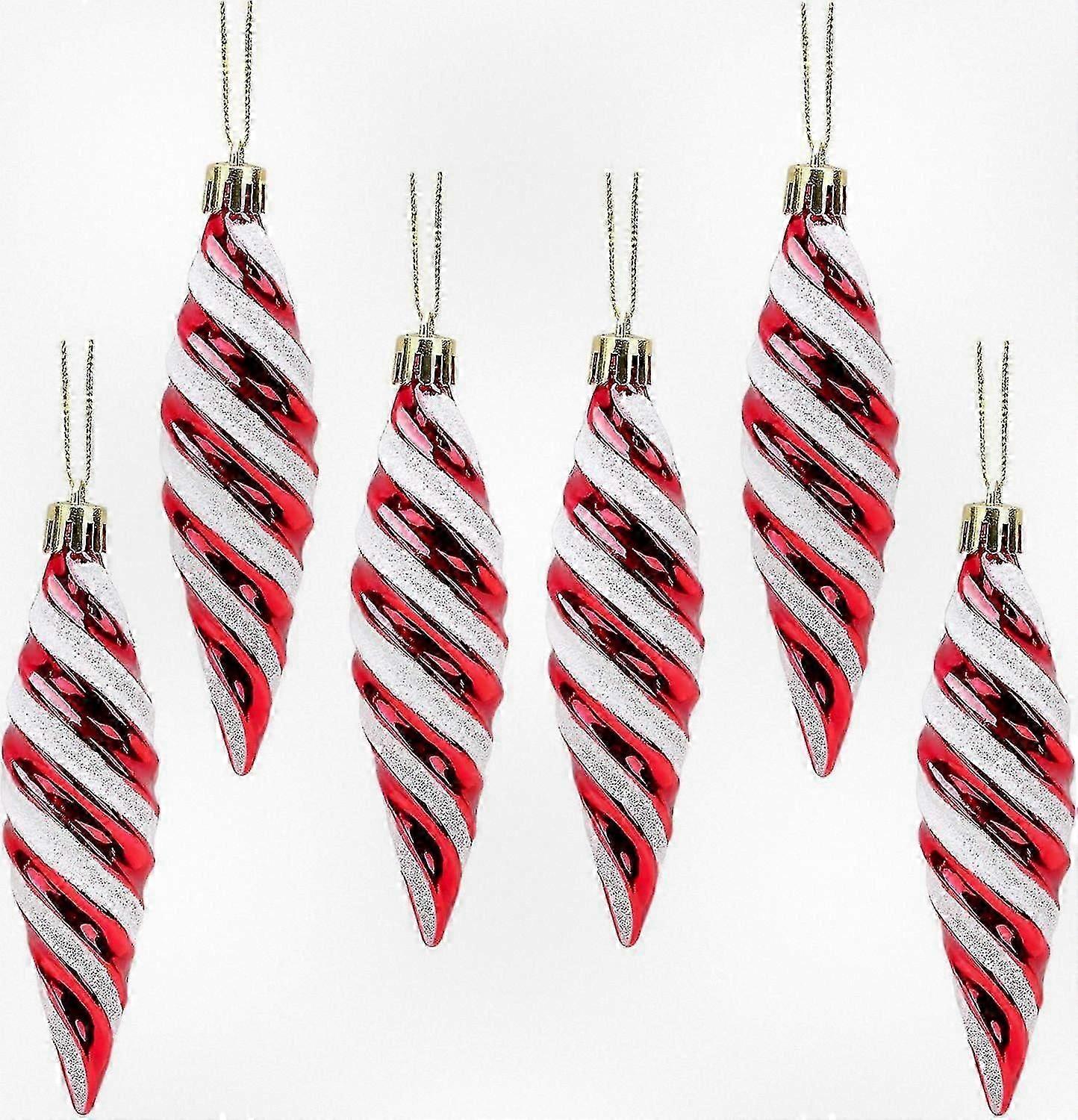 6 Large Spiral Baubles 110mm - Shiny Glitter Christmas Ornaments for Tree Decor in Red