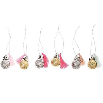 6 mini christmas balls with glitter and neon and pastel pompoms