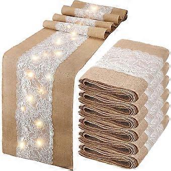 6 Pack Burlap Table Runner with LED Lights Lace Rustic Natural Boho Runner for Farmhouse Wedding Decor 12x108 Inches