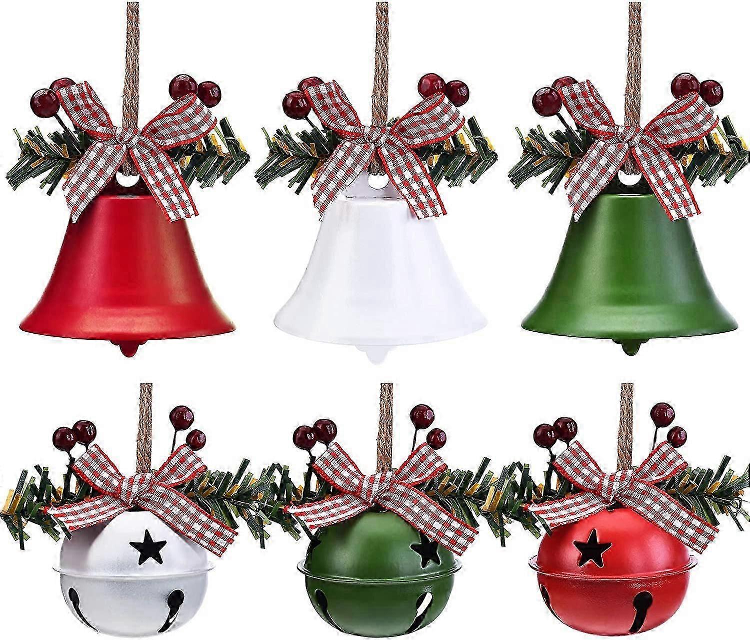 6 Pcs Christmas Bells Ornaments Christmas Jingle Bells Craft Bells Star Cutouts Christmas Anniversary Bells with Holly Berry