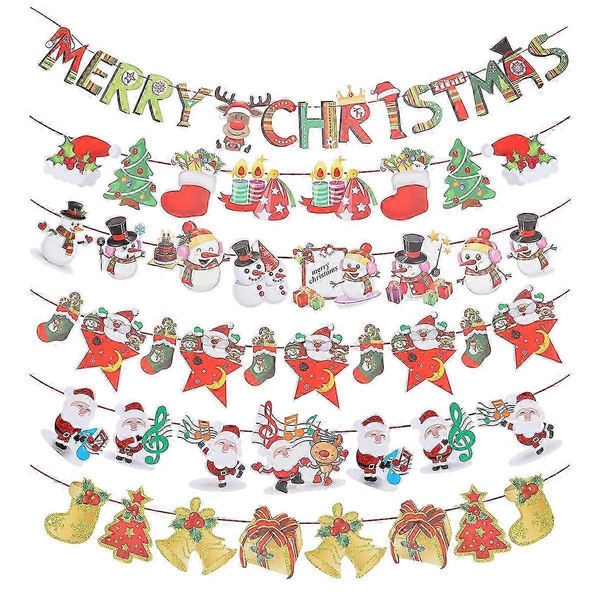 6 Pcs Christmas Hanging Drop Christmas Mantle Decor Xmas Tree Banner Christmas Hanging Flag Christmas Bunting